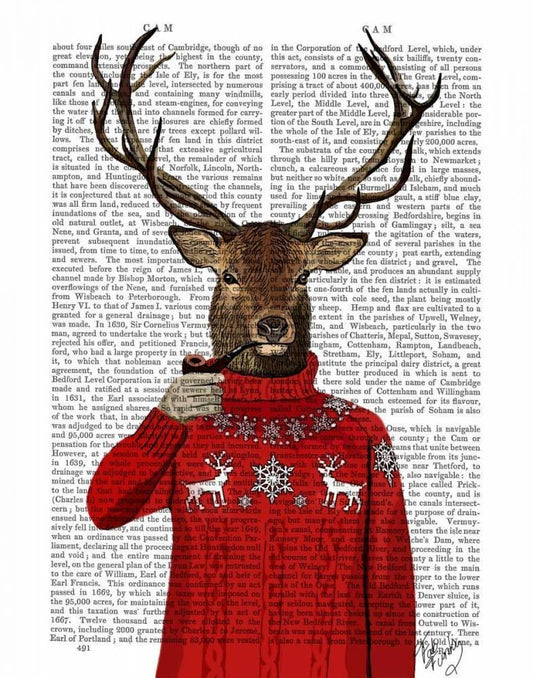 Deer in Ski Sweater White Modern Wood Framed Art Print with Double Matting by Fab Funky