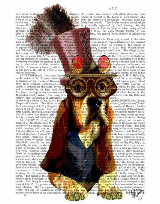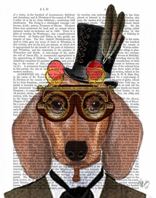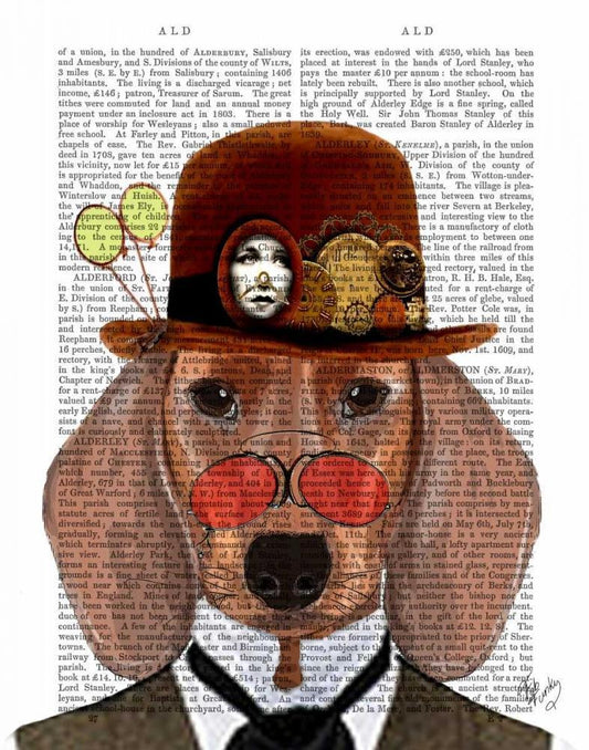 Dachshund with Steampunk Bowler Hat White Modern Wood Framed Art Print with Double Matting by Fab Funky