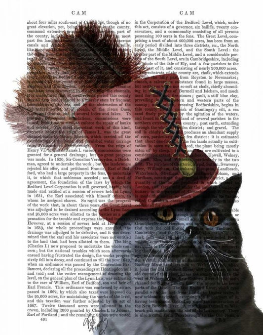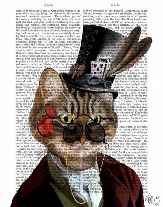 Grey Cat With Steampunk Top Hat White Modern Wood Framed Art Print with Double Matting by Fab Funky