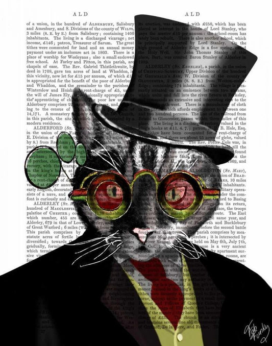 Steampunk Cat - Top Hat and red yellow glasses White Modern Wood Framed Art Print with Double Matting by Fab Funky