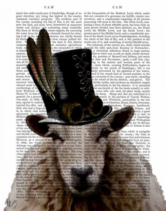 Steampunk Hare with Bowler Hat White Modern Wood Framed Art Print with Double Matting by Fab Funky