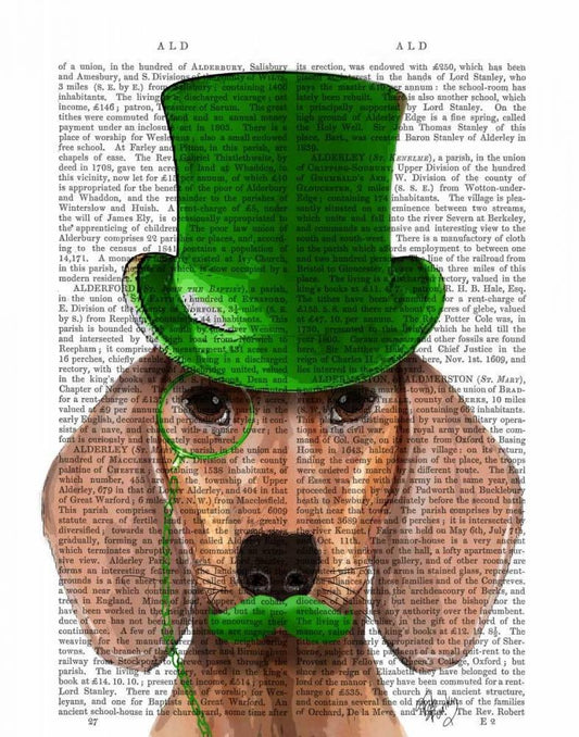 Dachshund Green Goggles Top Hat White Modern Wood Framed Art Print with Double Matting by Fab Funky