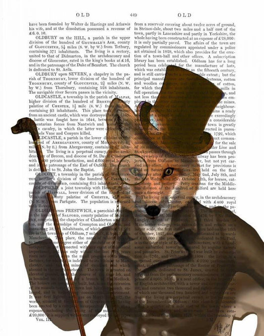 Vivienne Steampunk Fox White Modern Wood Framed Art Print with Double Matting by Fab Funky