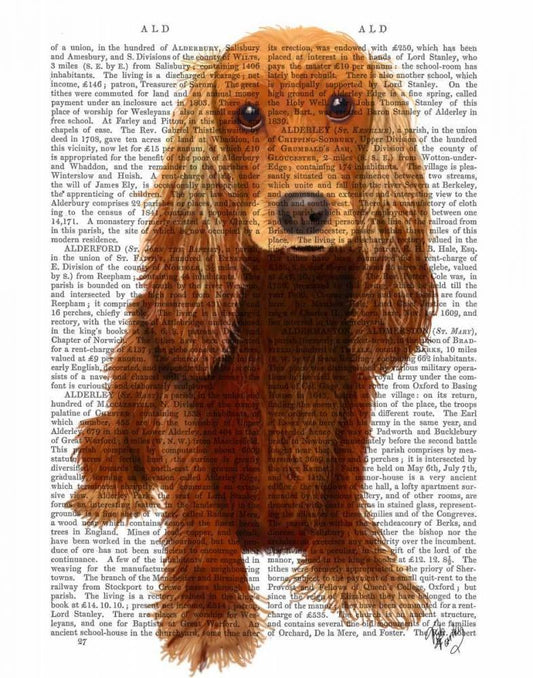 Dachshund Illustration Plain White Modern Wood Framed Art Print with Double Matting by Fab Funky
