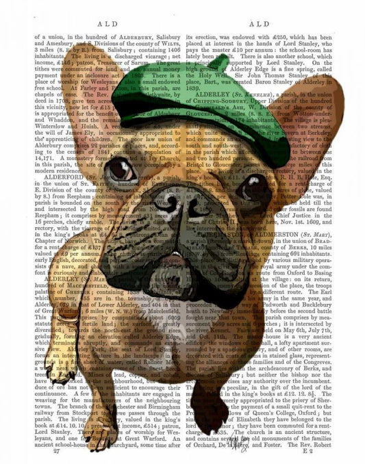 Brown French Bulldog with Green Hat White Modern Wood Framed Art Print with Double Matting by Fab Funky