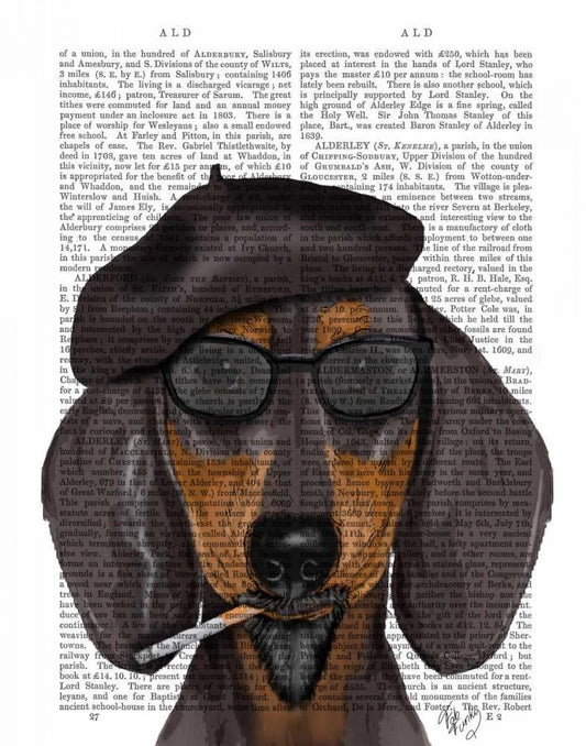 Hipster Dachshund Black and Tan White Modern Wood Framed Art Print with Double Matting by Fab Funky
