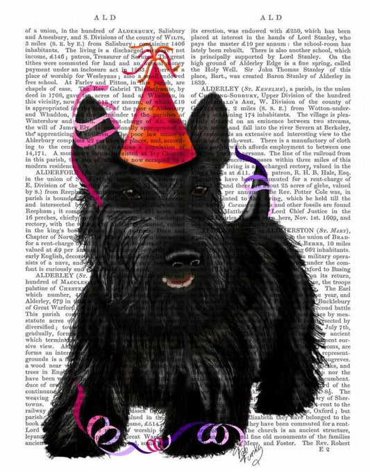 Scottish Terrier and Party Hat White Modern Wood Framed Art Print with Double Matting by Fab Funky