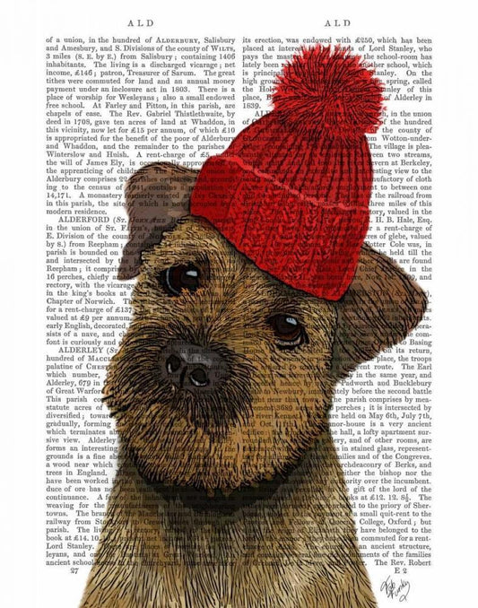 Border Terrier with Red Bobble Hat White Modern Wood Framed Art Print with Double Matting by Fab Funky