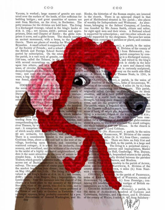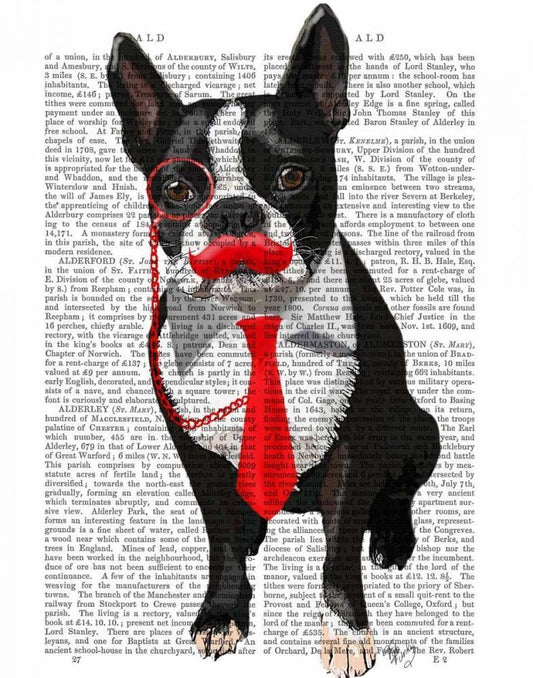Boston Terrier With Red Tie and Moustache White Modern Wood Framed Art Print with Double Matting by Fab Funky