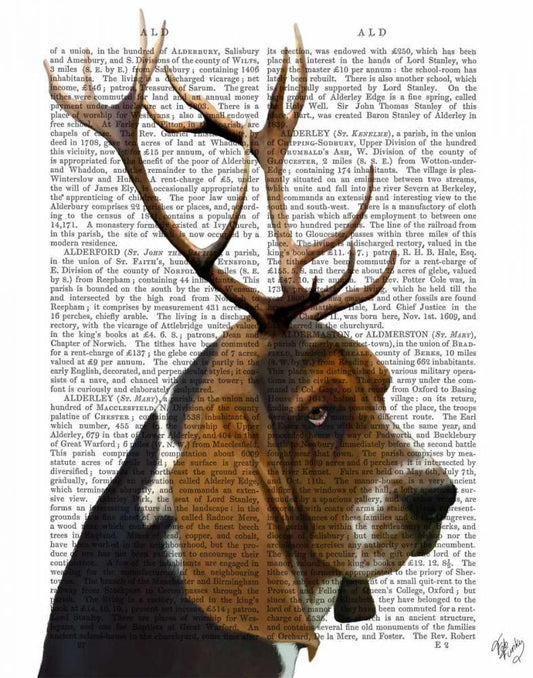 Basset Hound and Antlers White Modern Wood Framed Art Print with Double Matting by Fab Funky