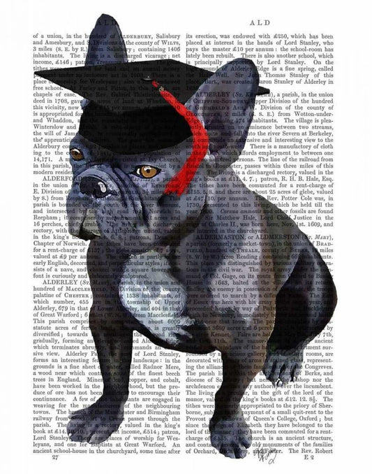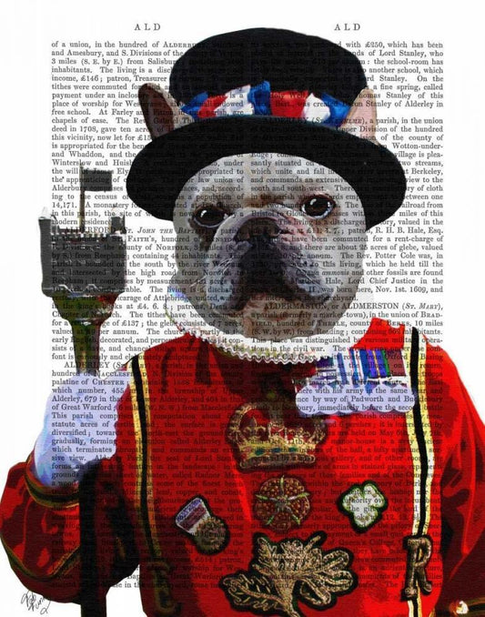 Bulldog Beefeater White Modern Wood Framed Art Print with Double Matting by Fab Funky