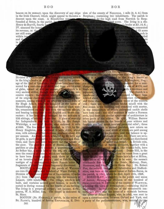 Yellow Labrador Pirate White Modern Wood Framed Art Print with Double Matting by Fab Funky