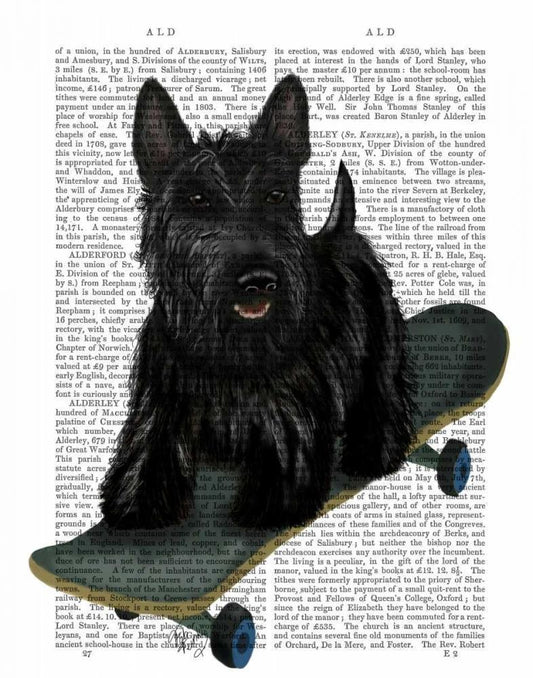Scottish Terrier and Birds White Modern Wood Framed Art Print with Double Matting by Fab Funky
