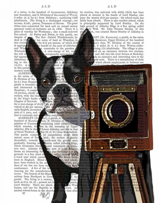 Boston Terrier Photographer White Modern Wood Framed Art Print with Double Matting by Fab Funky
