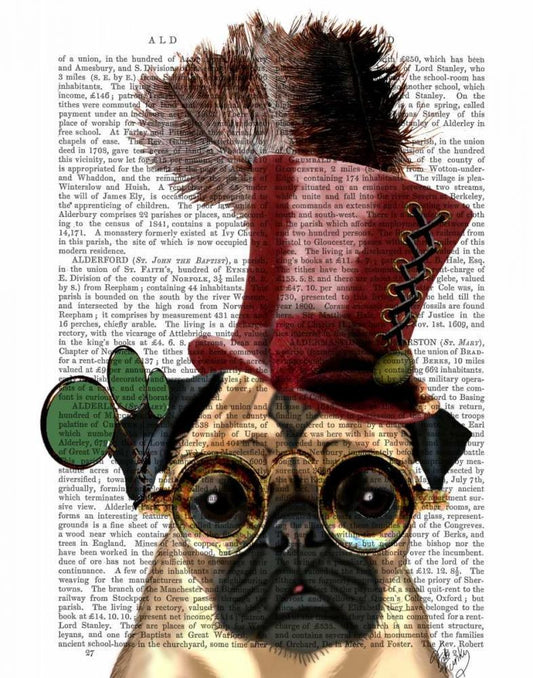 Pug with Steampunk Bowler Hat White Modern Wood Framed Art Print with Double Matting by Fab Funky