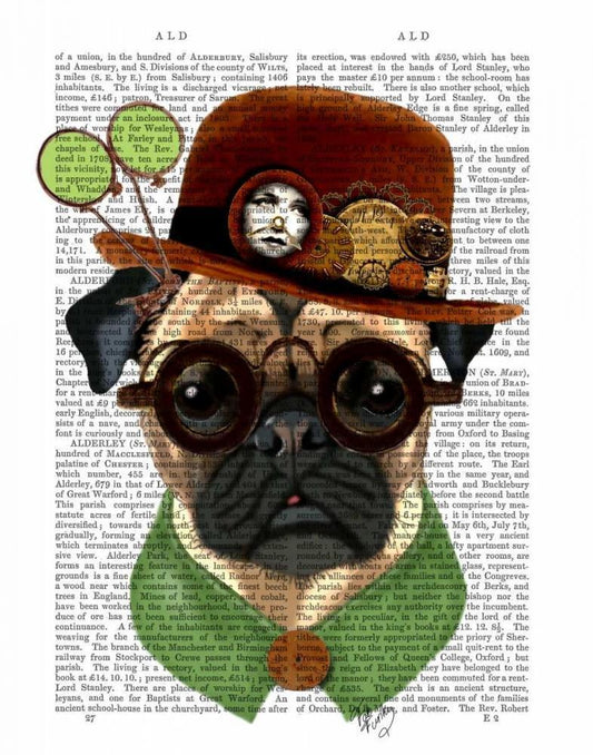 Pug with Steampunk Style Top Hat White Modern Wood Framed Art Print with Double Matting by Fab Funky