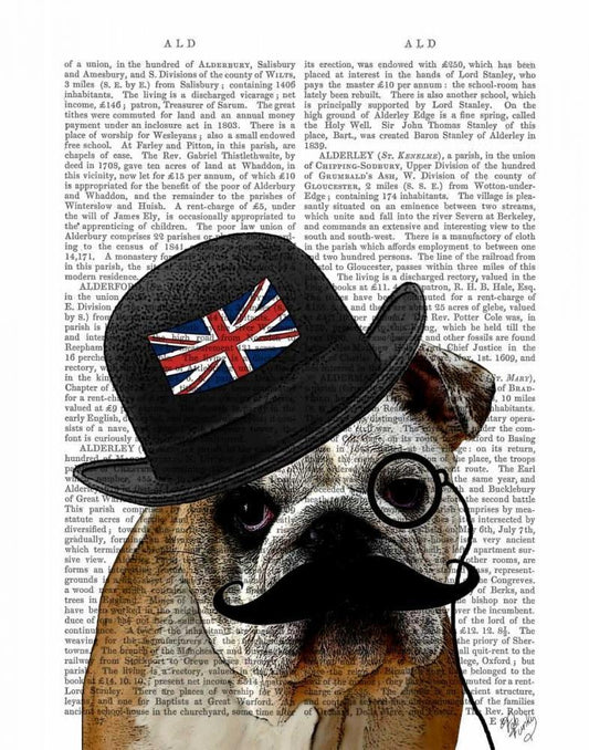 British Bulldog and Bowler Hat White Modern Wood Framed Art Print with Double Matting by Fab Funky