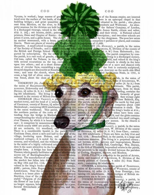 Greyhound in Green Knitted Hat White Modern Wood Framed Art Print with Double Matting by Fab Funky