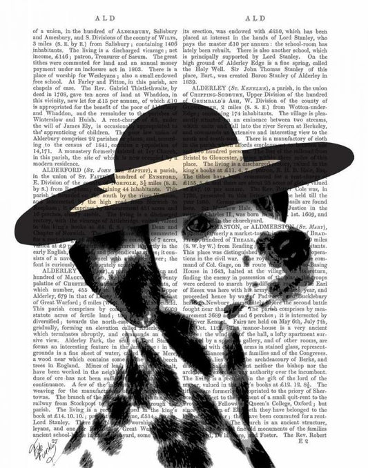 Dalmatian and Brimmed Black Hat White Modern Wood Framed Art Print with Double Matting by Fab Funky