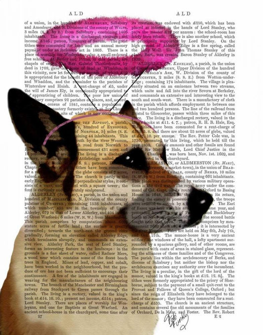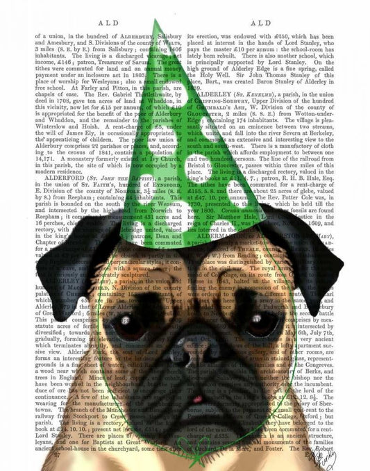 Party Pug White Modern Wood Framed Art Print with Double Matting by Fab Funky