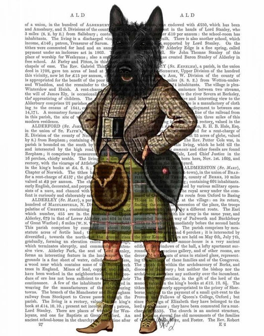 Scottish Terrier in Kilt White Modern Wood Framed Art Print with Double Matting by Fab Funky