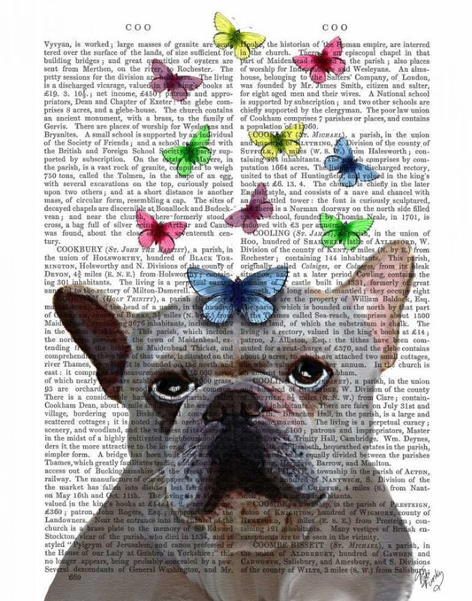 White French Bulldog and Butterflies White Modern Wood Framed Art Print with Double Matting by Fab Funky