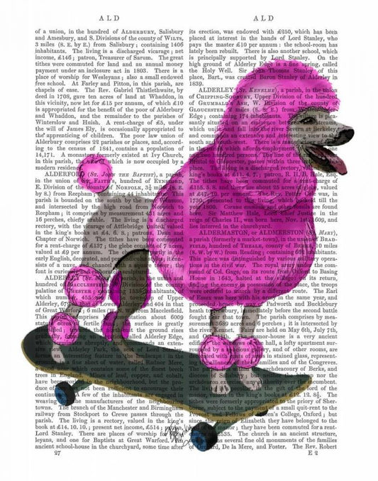 Pug with Vintage Purple Hat White Modern Wood Framed Art Print with Double Matting by Fab Funky