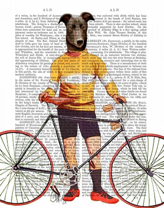 Greyhound Cyclist White Modern Wood Framed Art Print with Double Matting by Fab Funky