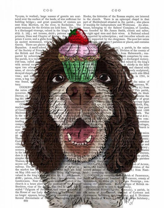 Springer Spaniel with Cupcake White Modern Wood Framed Art Print with Double Matting by Fab Funky