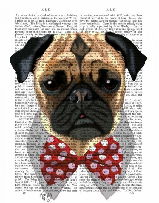 Pug with Red Spotted Bow Tie White Modern Wood Framed Art Print with Double Matting by Fab Funky