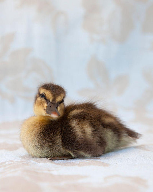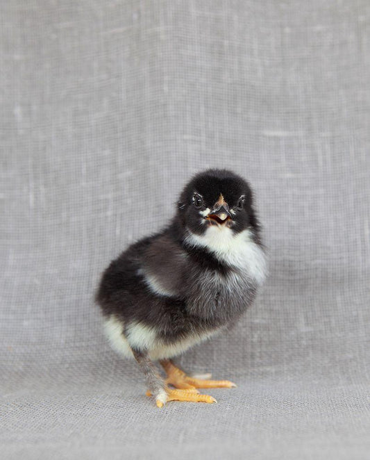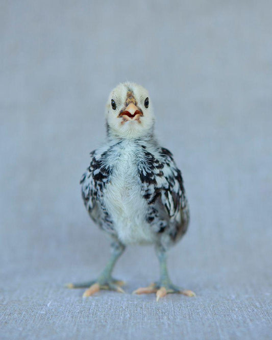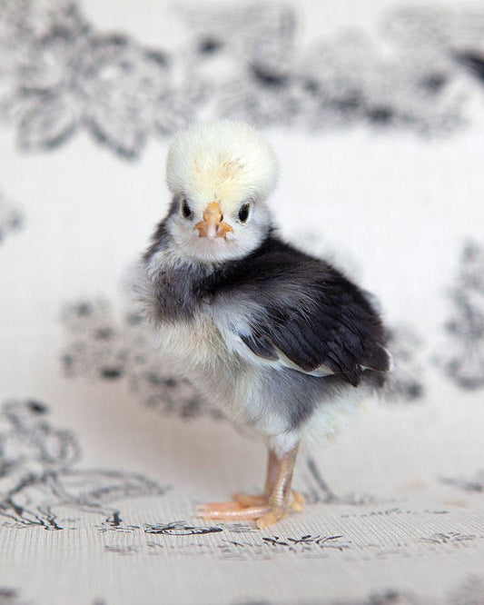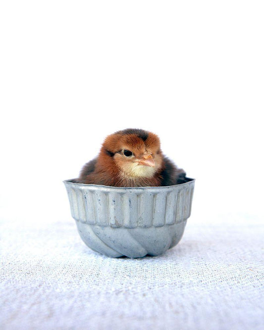 Chicks on Red Scale White Modern Wood Framed Art Print with Double Matting by Soderman, Tania
