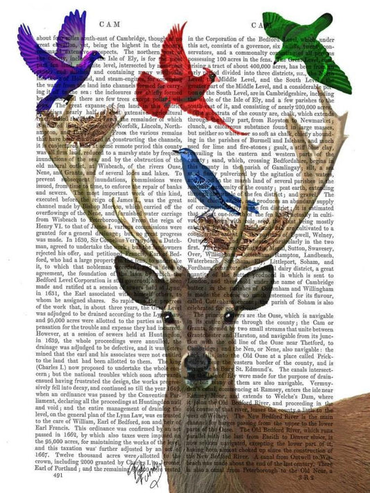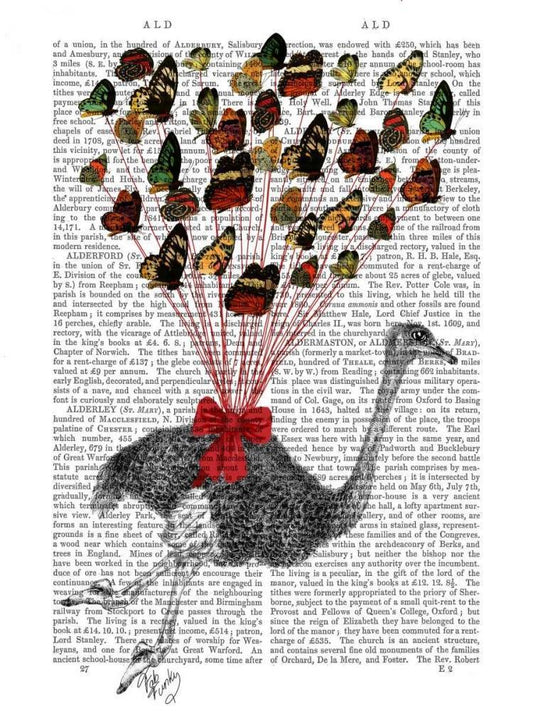Ostrich Flying with Butterflies White Modern Wood Framed Art Print with Double Matting by Fab Funky