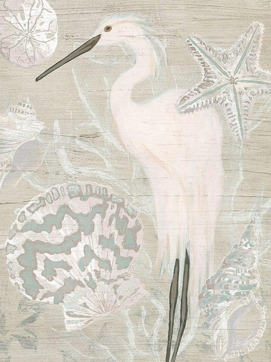 Driftwood Heron II White Modern Wood Framed Art Print with Double Matting by Vess, June Erica