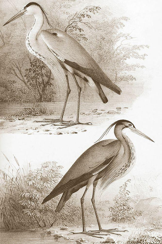 Sepia Water Birds I White Modern Wood Framed Art Print with Double Matting by Unknown