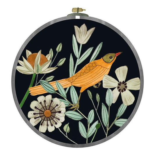Singing Birds V White Modern Wood Framed Art Print with Double Matting by Wang, Melissa