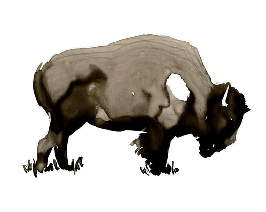 Monochrome Bison II White Modern Wood Framed Art Print with Double Matting by Parker, Jennifer Paxton