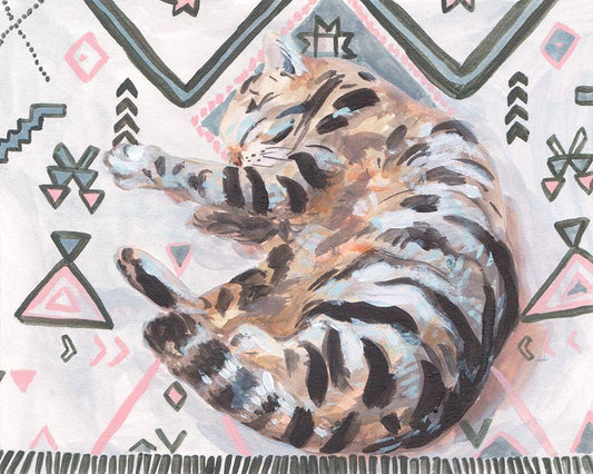 Little Sleepy Head II White Modern Wood Framed Art Print with Double Matting by Wang, Melissa