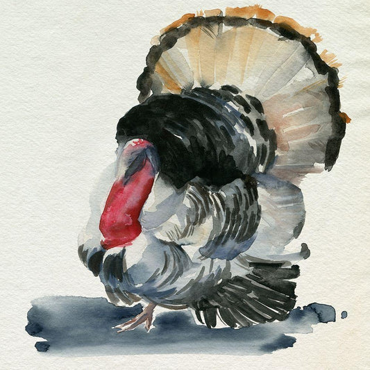 Watercolor Turkey I White Modern Wood Framed Art Print with Double Matting by Parker, Jennifer Paxton
