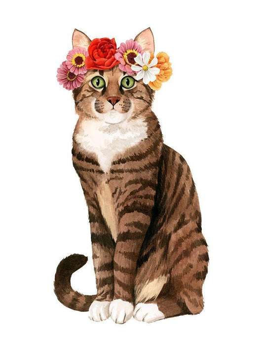 Flower Crown Cats I White Modern Wood Framed Art Print with Double Matting by Popp, Grace