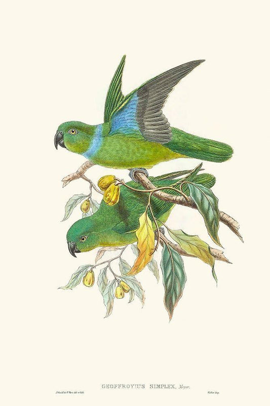 Lime And Cerulean Parrots I White Modern Wood Framed Art Print with Double Matting by Gould, John