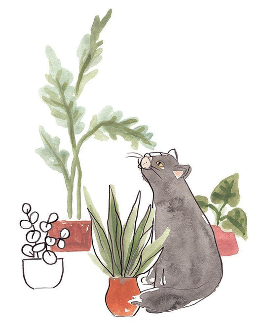 Purrfect Plants I White Modern Wood Framed Art Print with Double Matting by Vess, June Erica