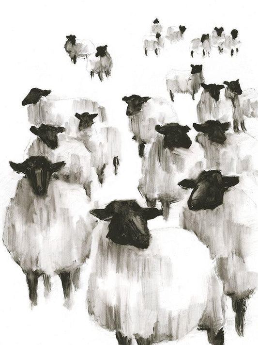 Counting Sheep I White Modern Wood Framed Art Print with Double Matting by Harper, Ethan