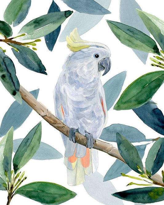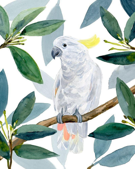 Cockatoo Perch I White Modern Wood Framed Art Print with Double Matting by Warren, Annie