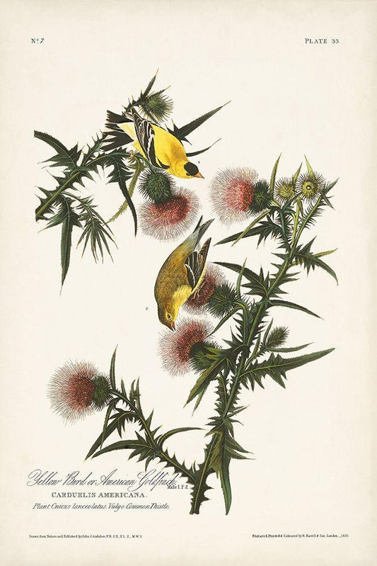 Pl. 33 American Gold Finch White Modern Wood Framed Art Print with Double Matting by Audubon, John James