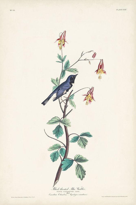Pl. 155 Black-throated Blue Warbler White Modern Wood Framed Art Print with Double Matting by Audubon, John James