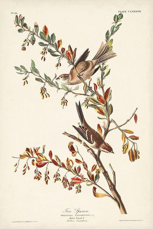 Pl. 188 Tree Sparrow White Modern Wood Framed Art Print with Double Matting by Audubon, John James