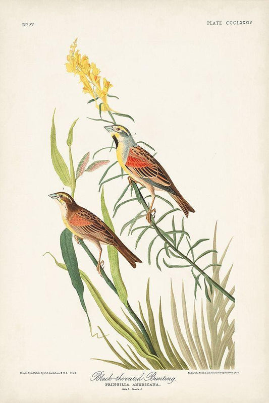 Pl. 384 Black-throated Bunting White Modern Wood Framed Art Print with Double Matting by Audubon, John James