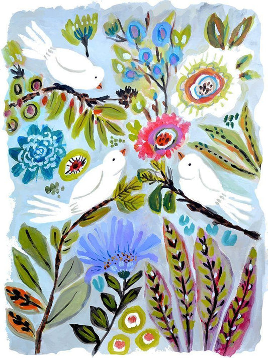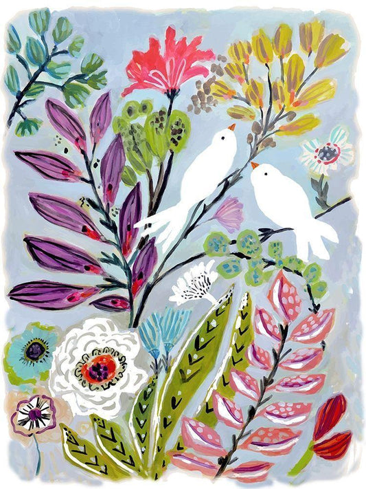 Bird Love II White Modern Wood Framed Art Print with Double Matting by Fields, Karen