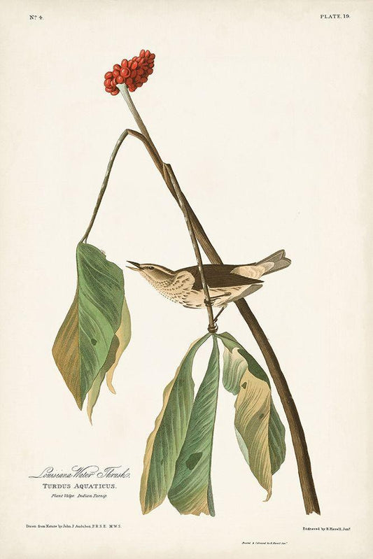 Pl. 19 Louisiana Water Thrush White Modern Wood Framed Art Print with Double Matting by Audubon, John James