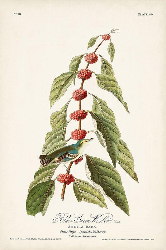 Pl. 49 Blue- Green Warbler White Modern Wood Framed Art Print with Double Matting by Audubon, John James